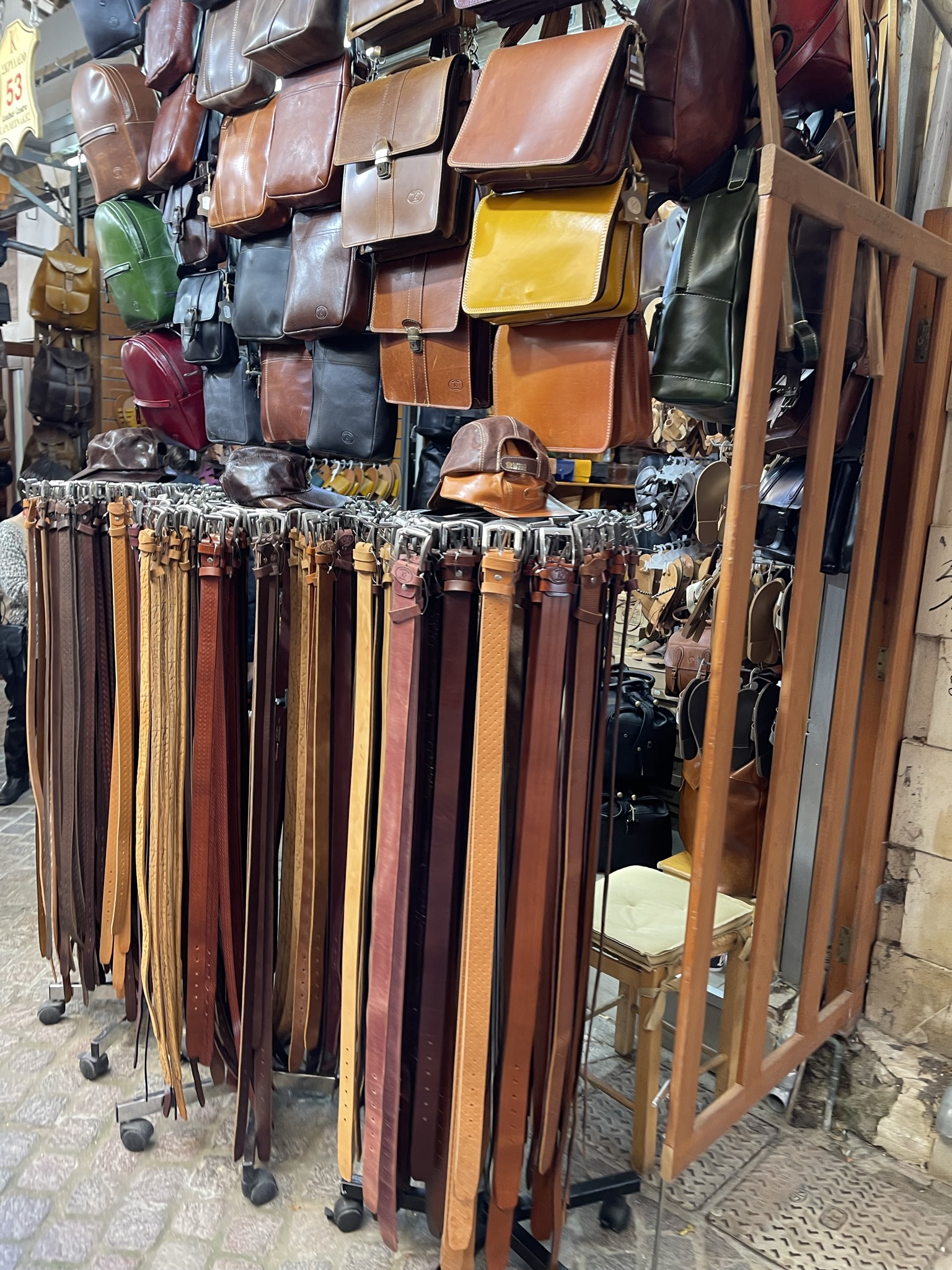 It seemed that each store had varying prices for what appeared to be identical belts. After careful examination of assessing the quality of leather and price, my dad and brother purchased a couple of belts. The store owner rang us up and we were able to pay with our credit cards. The store owner gave us a bag to put the belts in and said goodbye. Shopping at leather lane was a wonderful way to end our day in Old Town Chania in Crete, Greece.