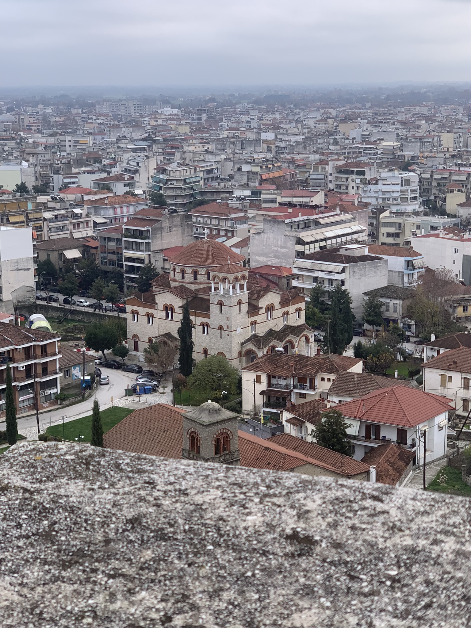 View of a church from the Trikala clock tower