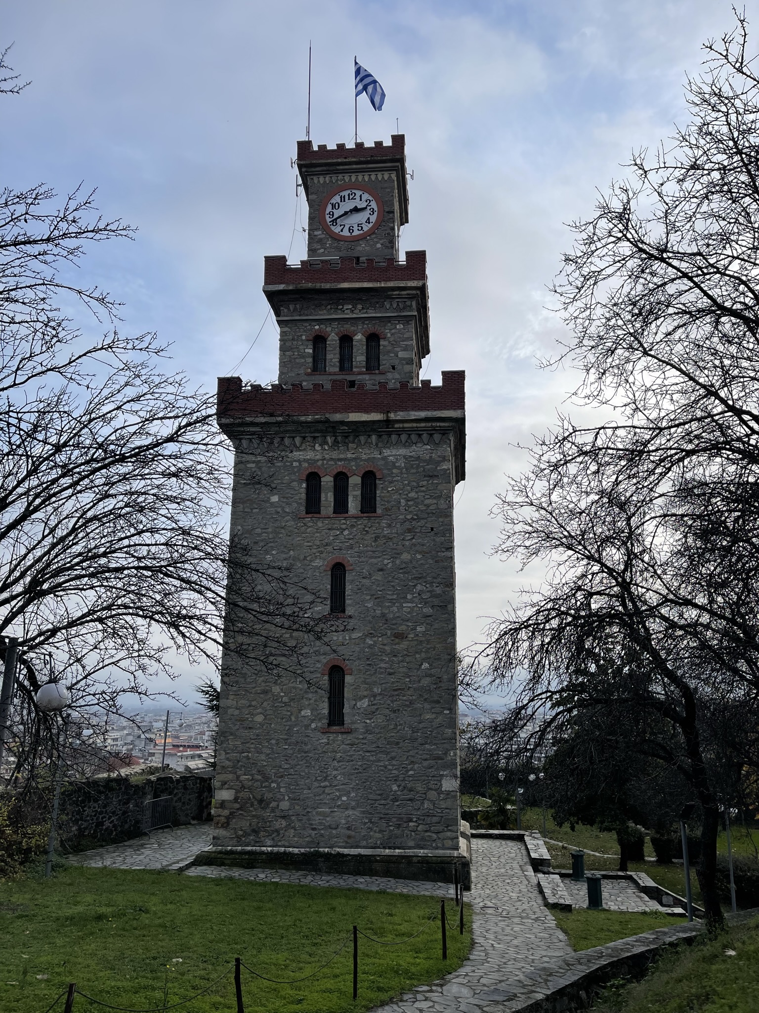 After eating our food, we went to the clock tower. We climbed three flights of stairs and a large spiral staircase for another floor* (total of four floors) to reach the top of the tower. Once I reached the top, I could see the Byzantine castle and Trikala. Once we finished taking pictures of the view, we walked back down and exited the park.
