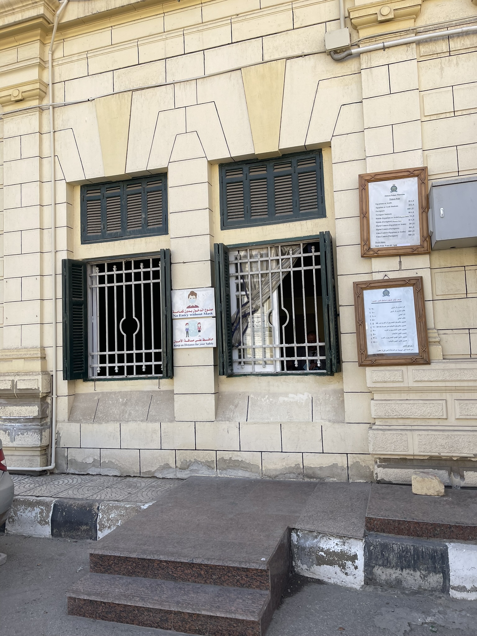 To purchase tickets for the museum, I went inside a parking across the street from the Abdeen Palace Museum. I purchased one entry ticket for 100EP and an additional ticket to take photos for 10EP. If you do not purchase a photo ticket, the museum associates will confiscate your phone before you enter and store it in a locker so you can only pick it up after you leave.