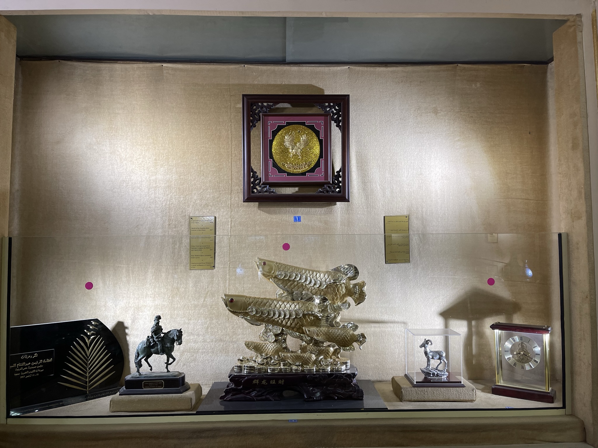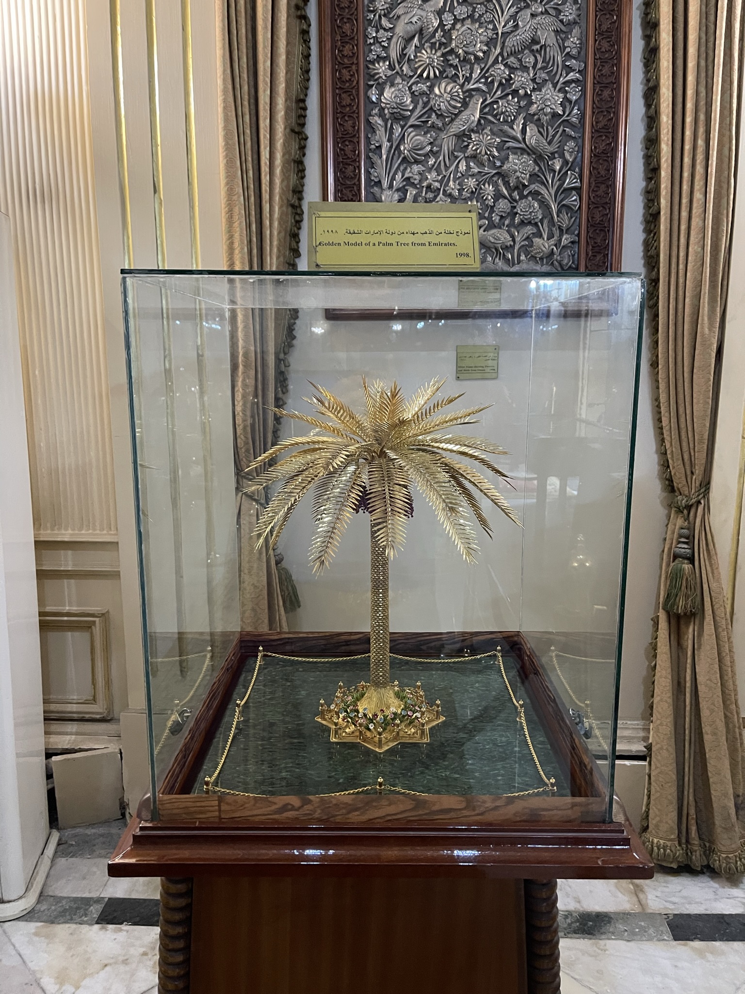 The fourth museum I visited was the Presidency Museum, which showcases the museum’s magnum opus artifacts that the president received as gifts from other countries. Every artifact was perfect in its own right with the most precious metals used and the finest workmanship. Some of my favorites were a golden model of a palm tree from the Emirates and a golden Koi statue with other statues and a medallion.