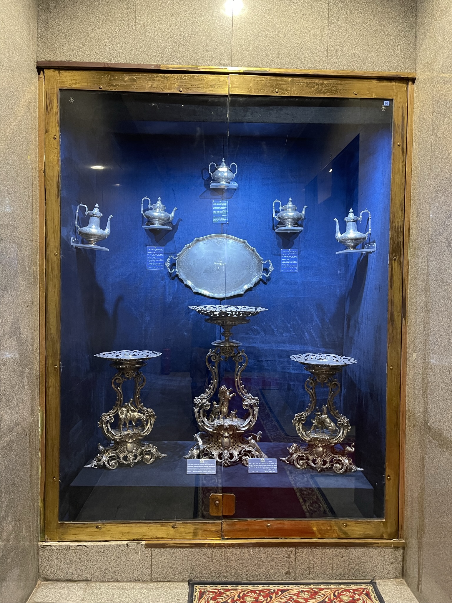The third museum I visited was the Private Acquisition, Medals, and Decorations Museum, which showcased arms, instruments, silverware, porcelain boxes, pens, radios, jewelry boxes, and many more everyday items. One artifact that I enjoyed was the Sword of Justice and Coronation, which boasted a grip made of gold and ordained with several precious and semi-precious stones. There was a mirror positioned underneath the sword, which allowed me to view its majesticness from all angles. The sword was once owned by Russian emperors during the 17th century and was later acquired by King Farouk from a European auction in 1947 for a sum of 11,000 English pounds.