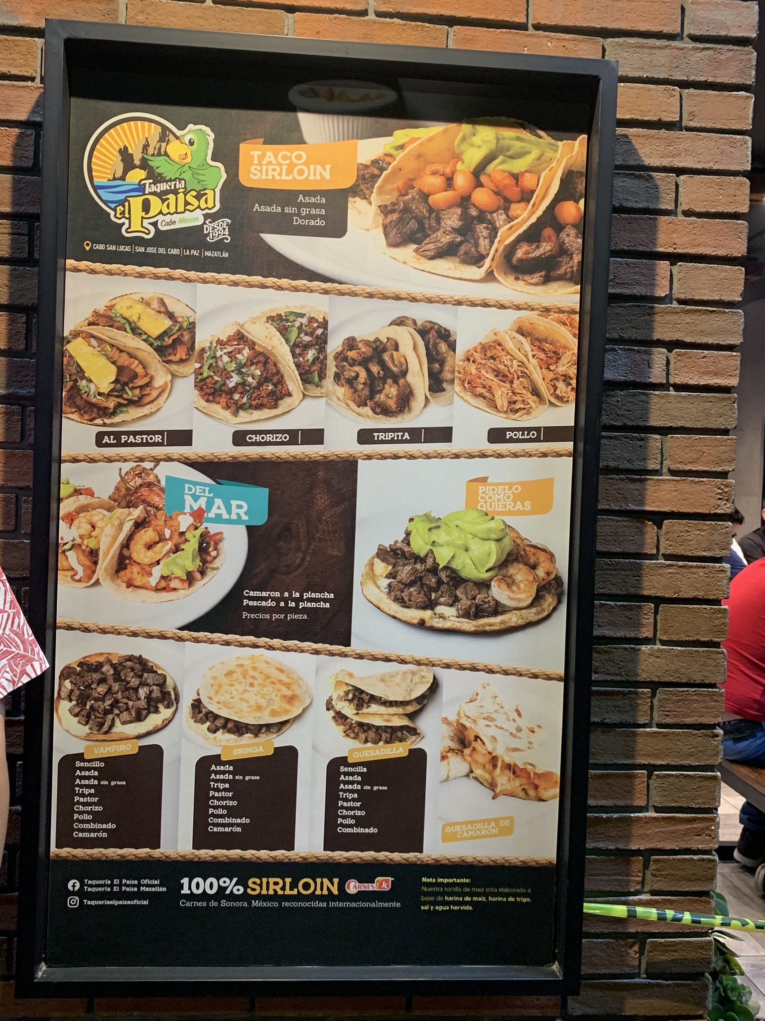 After we got settled, we went to taqueria El paisa for dinner. We arrived around 8:30pm and the restaurant was crowded. We had to wait 15 minutes for a table. While waiting, we were reviewing the menu outside, so when we sat down we could order immediately.