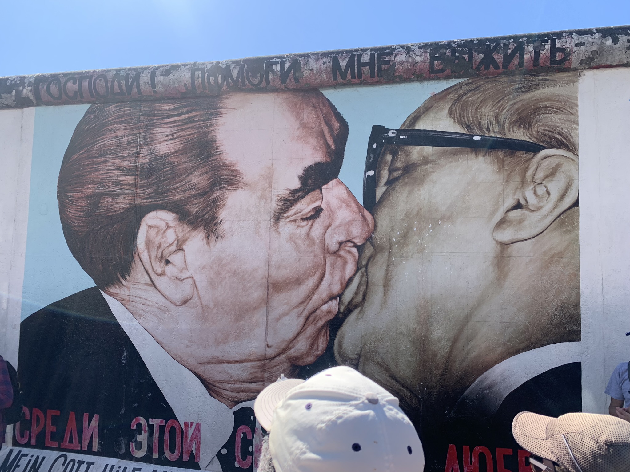 This mural is inspired by the famous photograph of Brezhnev and Honecker sharing a kiss. The “socialist fraternal kiss” was a unique greeting between leaders of socialist states, symbolizing the strong bond between Communist countries. It typically involved an embrace followed by three kisses on alternating cheeks. However, in rare instances, when the leaders felt particularly close, the kiss was exchanged on the mouth instead of the cheeks.
