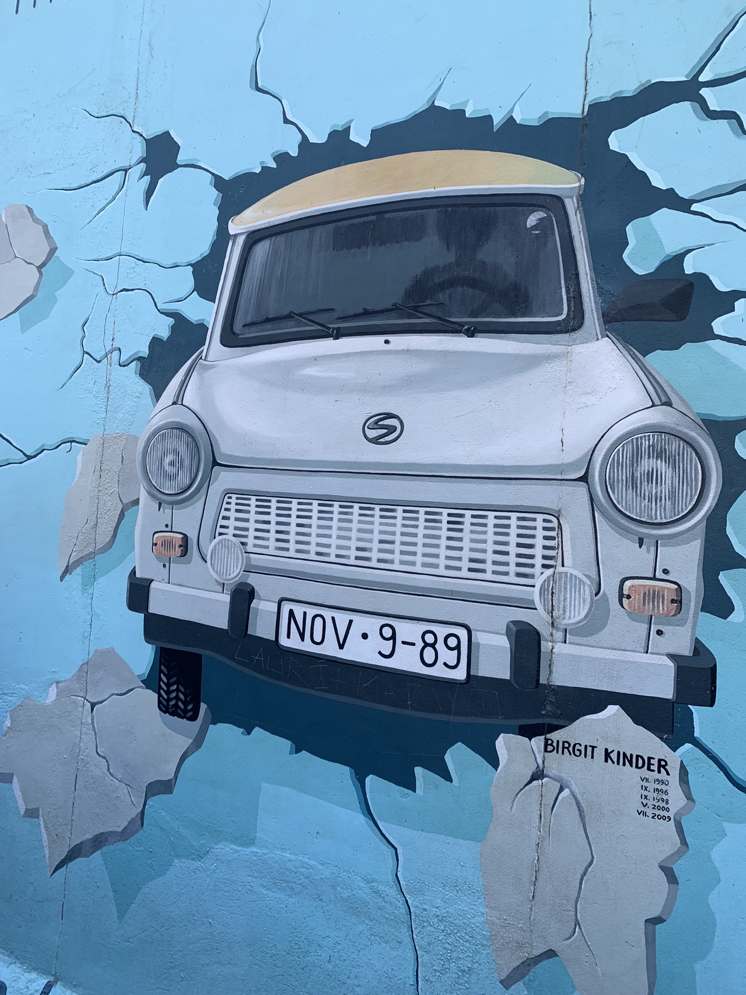 This mural, originally created in 1990 and known as Test the Best until it was renamed Test the Rest in 2009 due to the City of Berlin’s handling of the East Side Gallery at the time. It features the iconic Trabant, a popular car among East Germans, depicted breaking through the Berlin Wall. The mural serves as a poignant reminder of those who attempted to escape to the West, symbolizing the struggle for freedom and the resilience of those affected by the division.