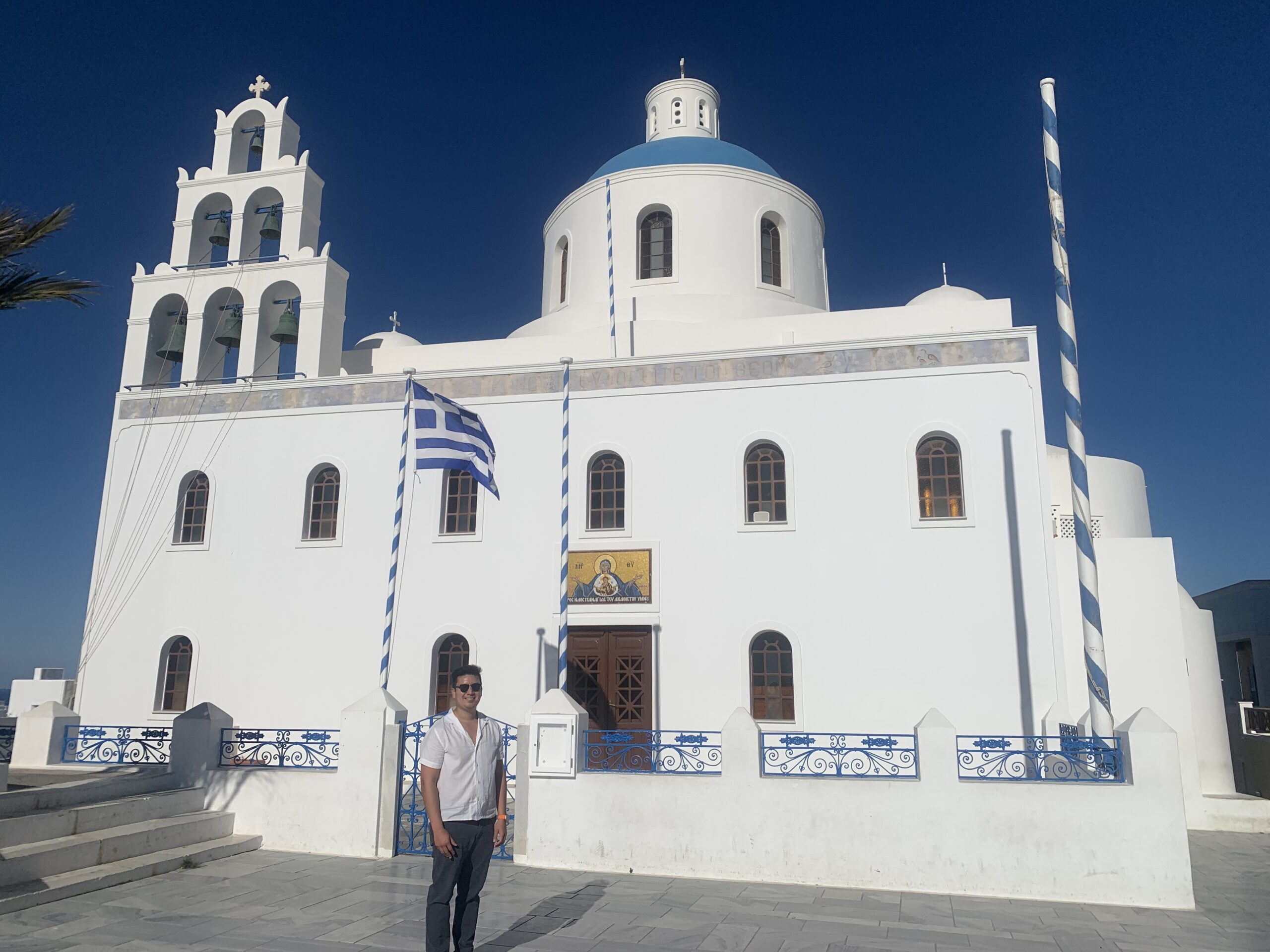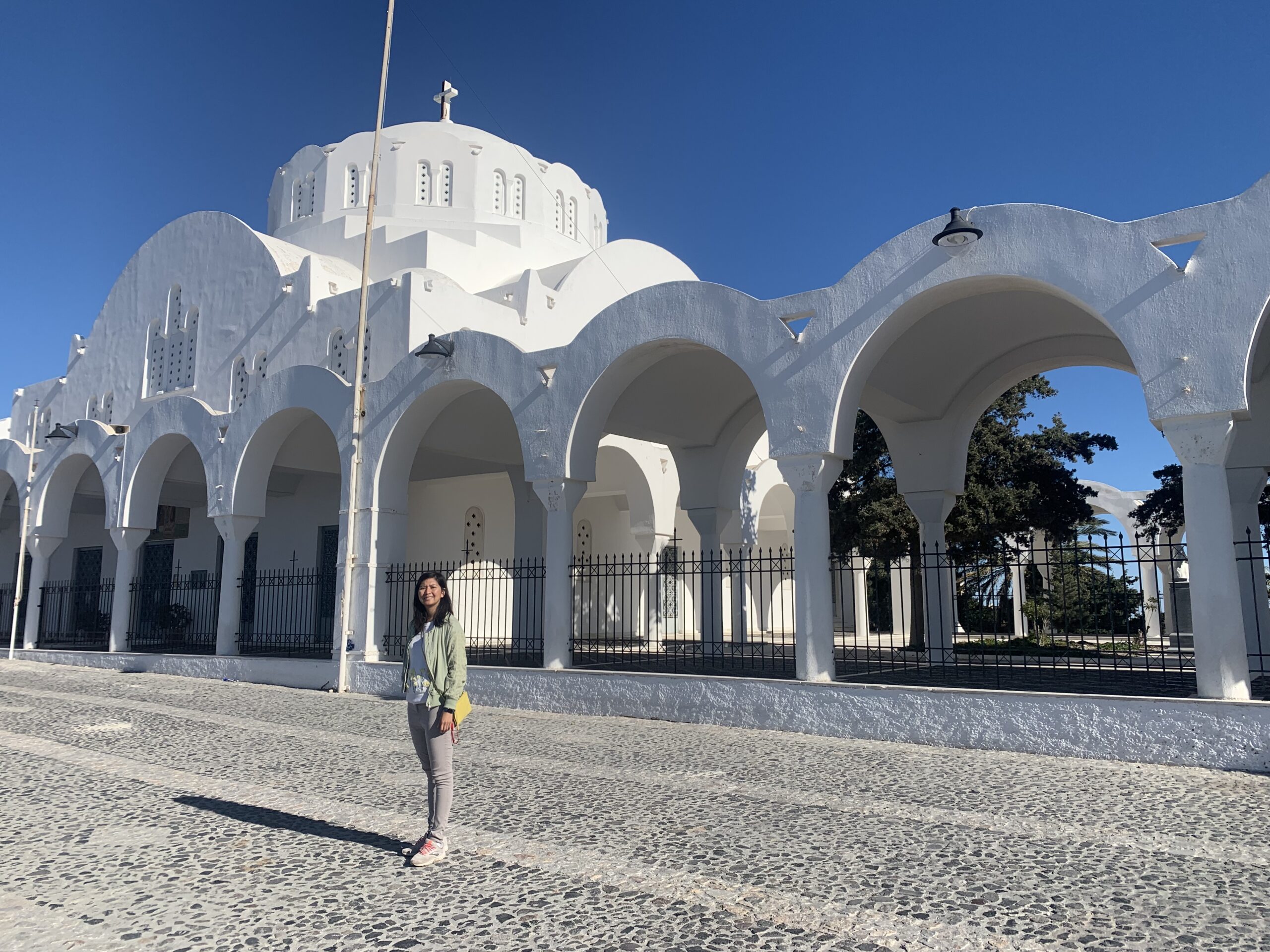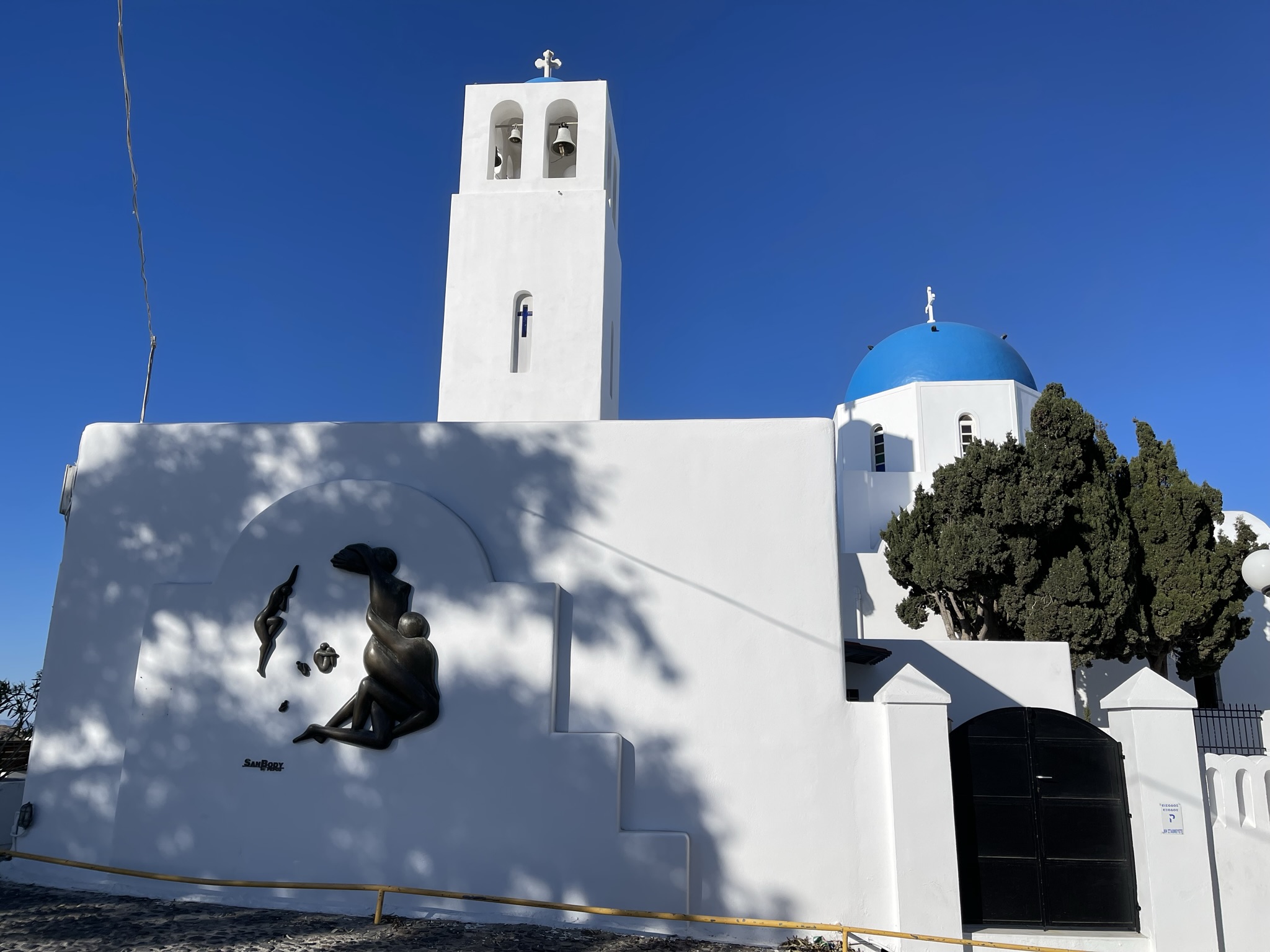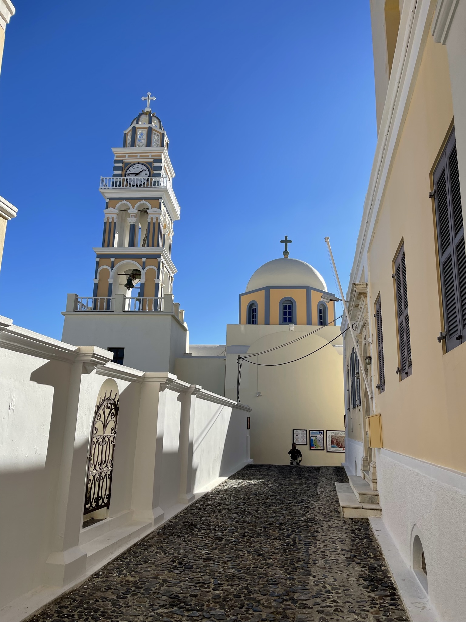 - We walked around the famous Three Bells of Fira, which was next to the Firostefani Central Square.