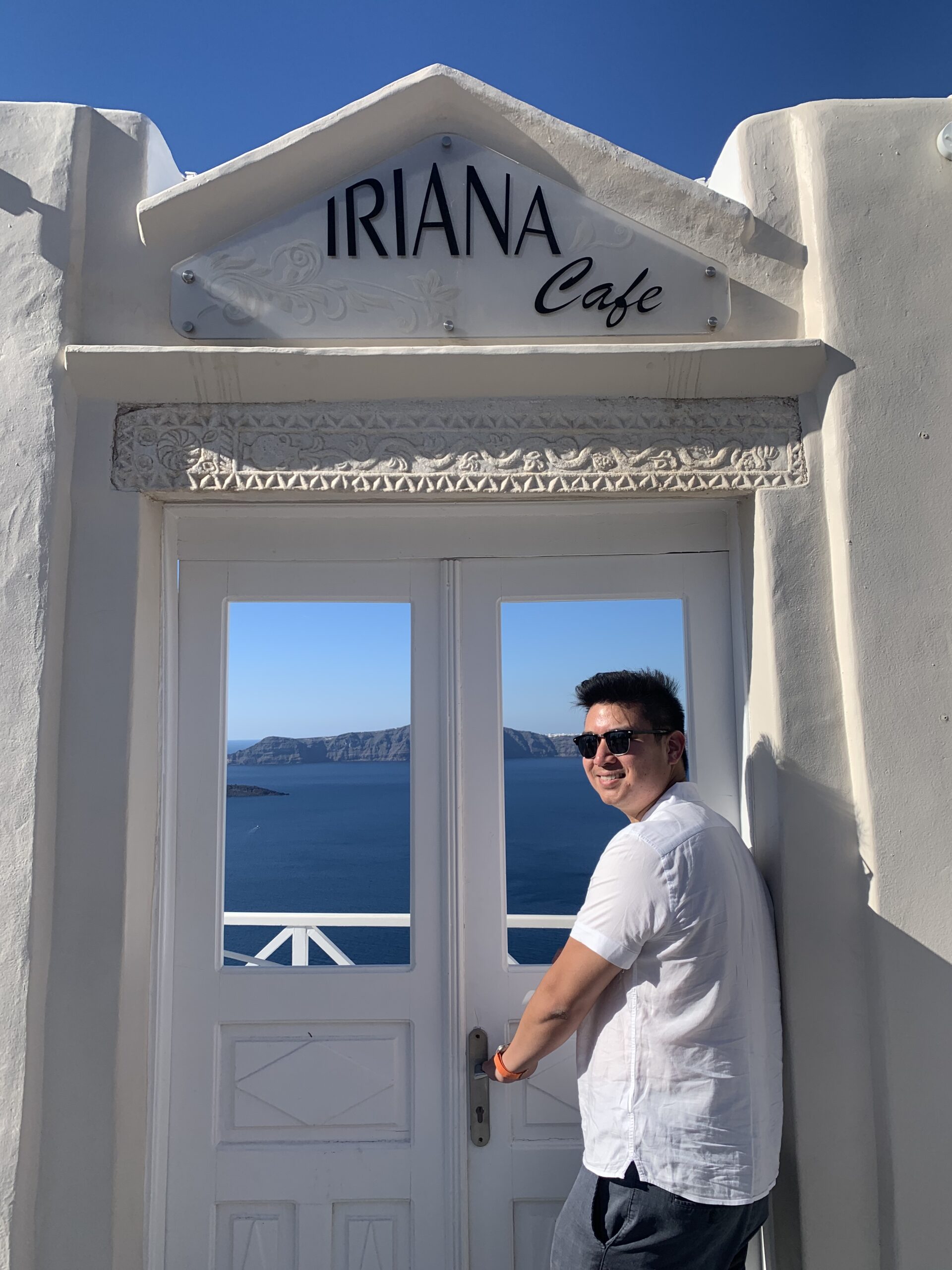 Then, we roamed around the streets of Fira and stumbled upon a Bakery. Me and my dad bought an orange cake and Greek coffee.