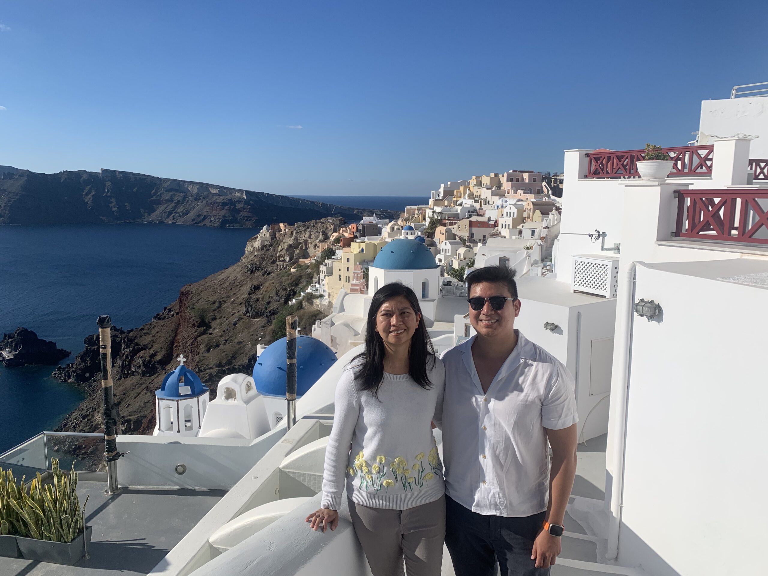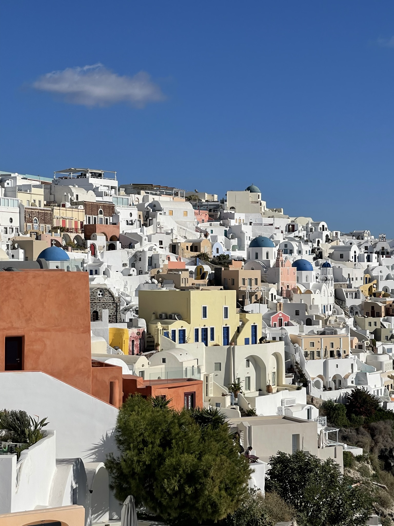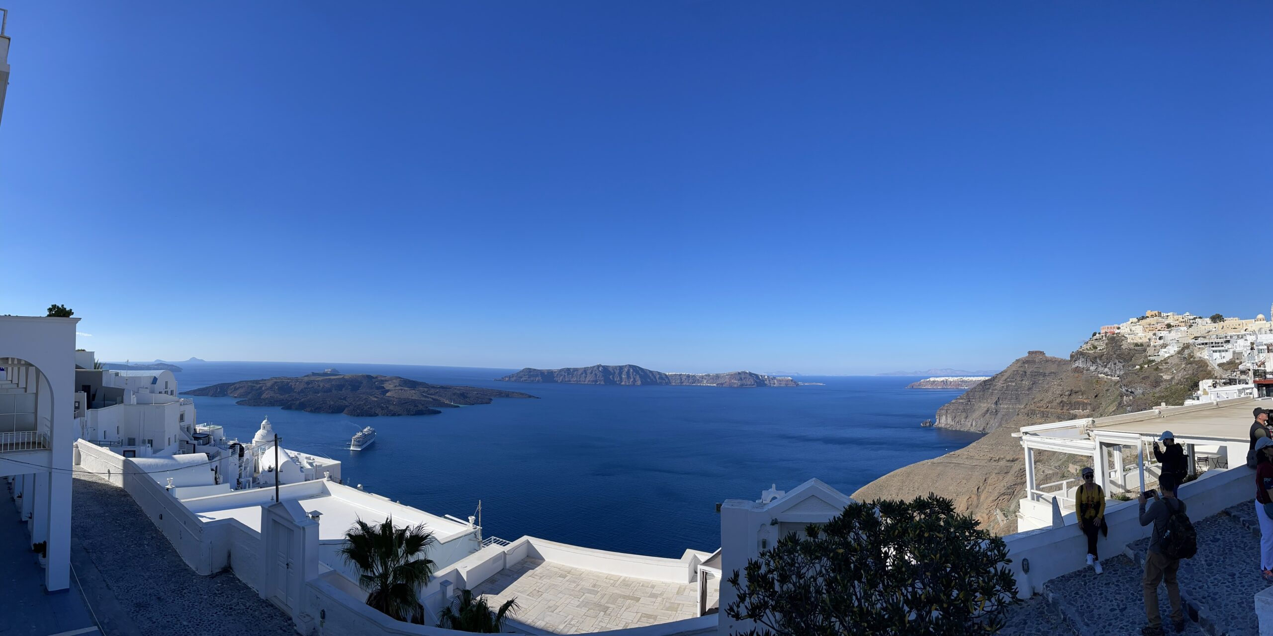 On the 7th day of the 10-day Viking Greek Odyssey Cruise, I arrived in Santorini, Greece. We booked the complimentary shore excursion, Summits & Countryside, where we viewed the famous blue domes in Oia Village and explored the Fira’s vibrant streets.