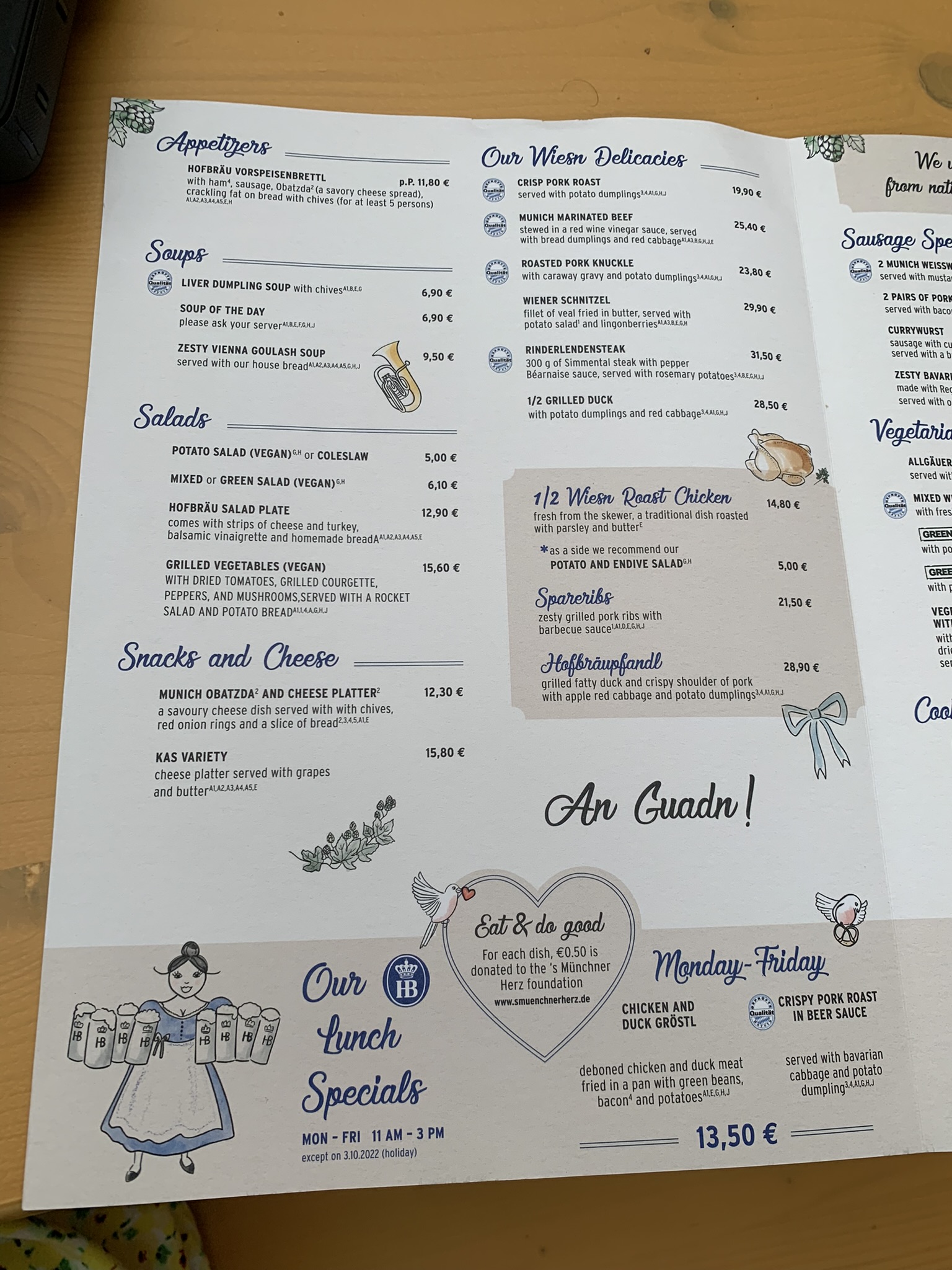 - Tipping etiquette: The servers make money off tips. When I went in 2023, I paid 14,50 euros for a liter of beer. I gave 15 euros to the server, and she kept the change because she expected the 0.50 euros as her tip.