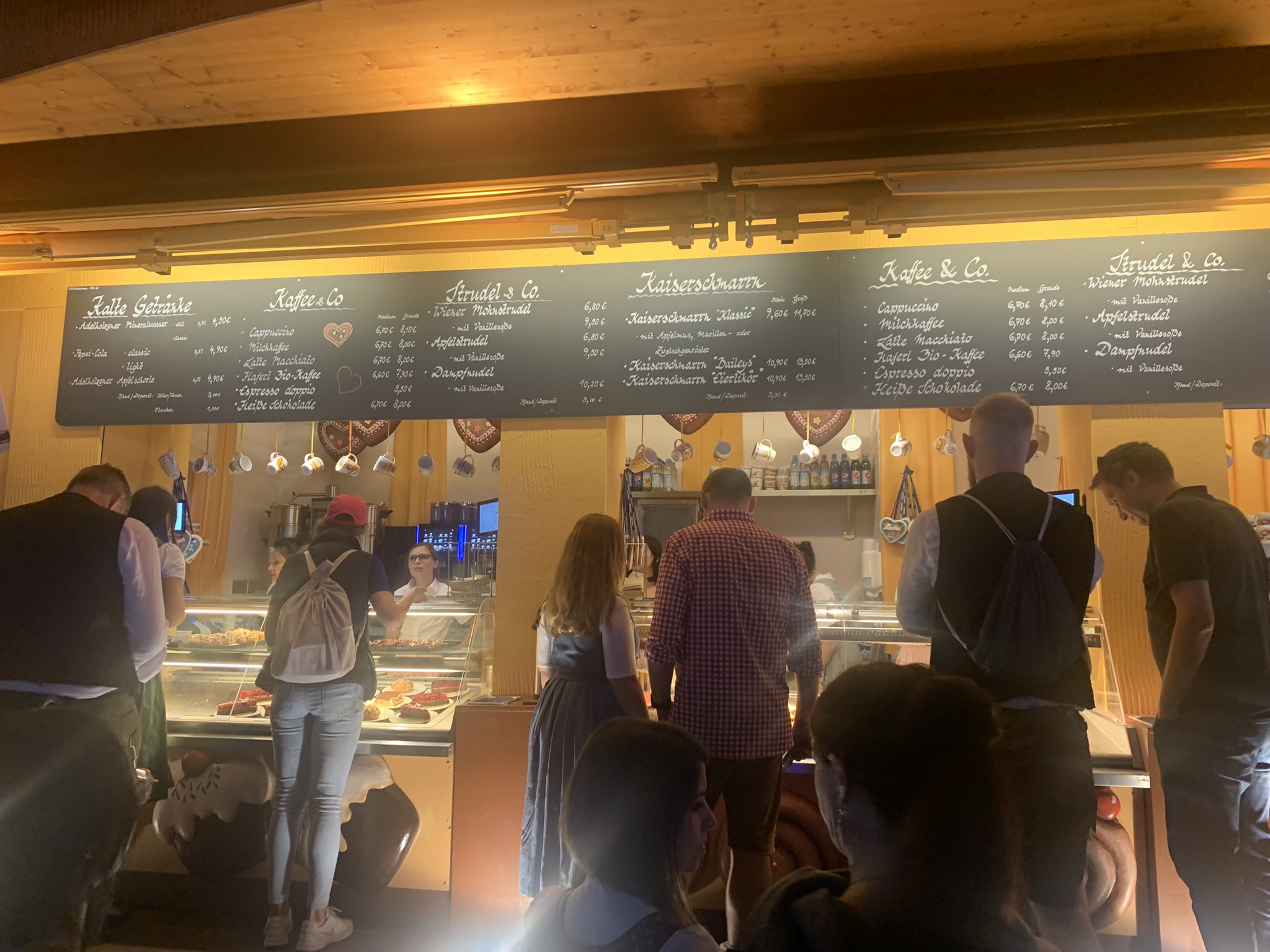 There are 20 smaller and medium sized tents that serve a variety of foods from coffee and donuts, Kaiserschmarrn (sweet pancake), potatoes and cheese to roasted duck. Most of these places allow you to purchase food on the go or offer seats so you can sit and relax in a cozy environment.