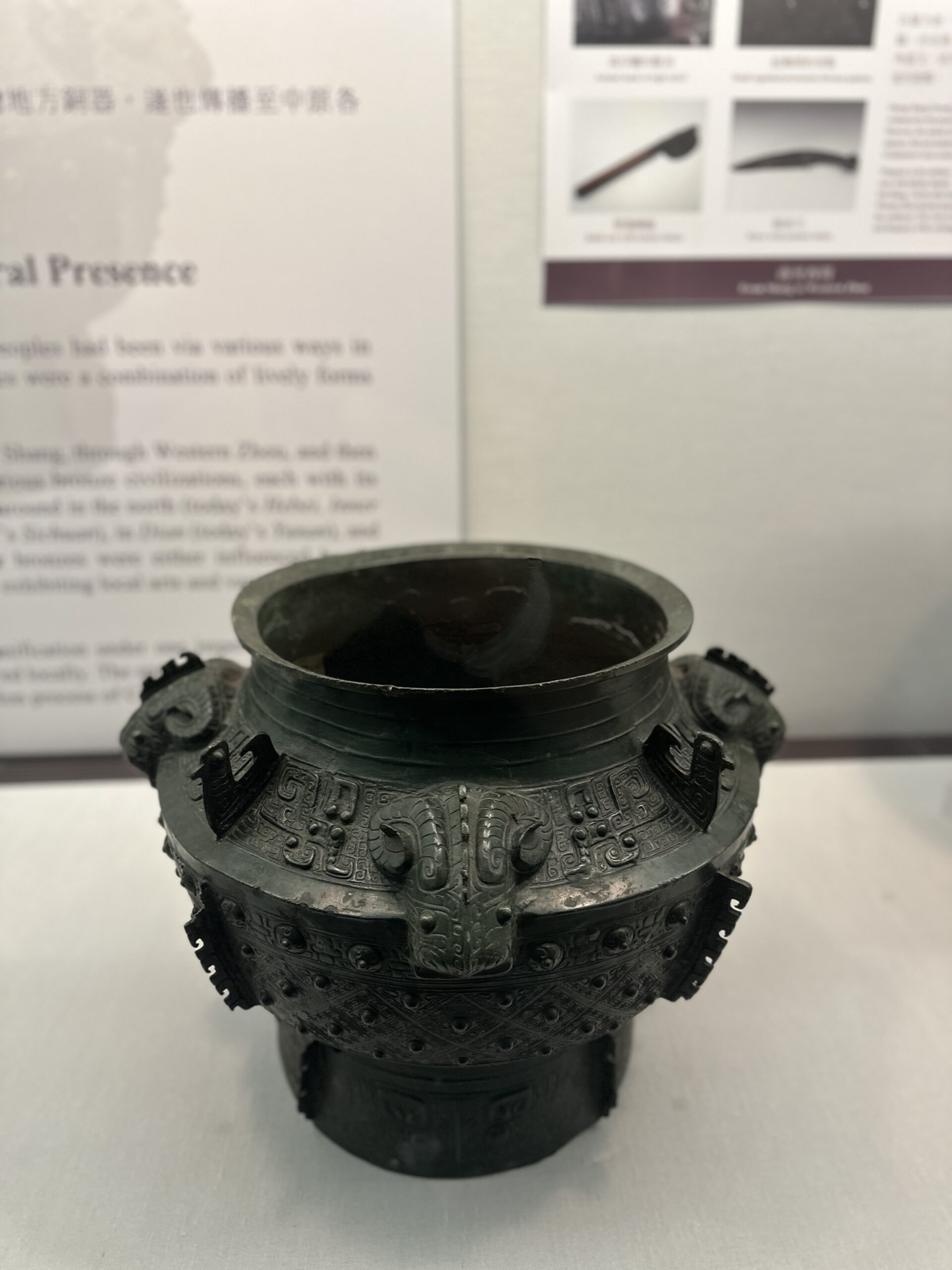 The Bronze Collection showcases the artistry and technical mastery of ancient Chinese bronze workers, particularly from the Shang (1600–1046 BCE) and Zhou (1046–256 BCE) dynasties. Its most renowned treasure, the Ding Cauldron of Duke Mao, is a tripod vessel adorned with a remarkable 500-character inscription on its interior. This text, which records a royal decree and reflects the political and cultural history of the Western Zhou Dynasty, is what makes the cauldron so invaluable.