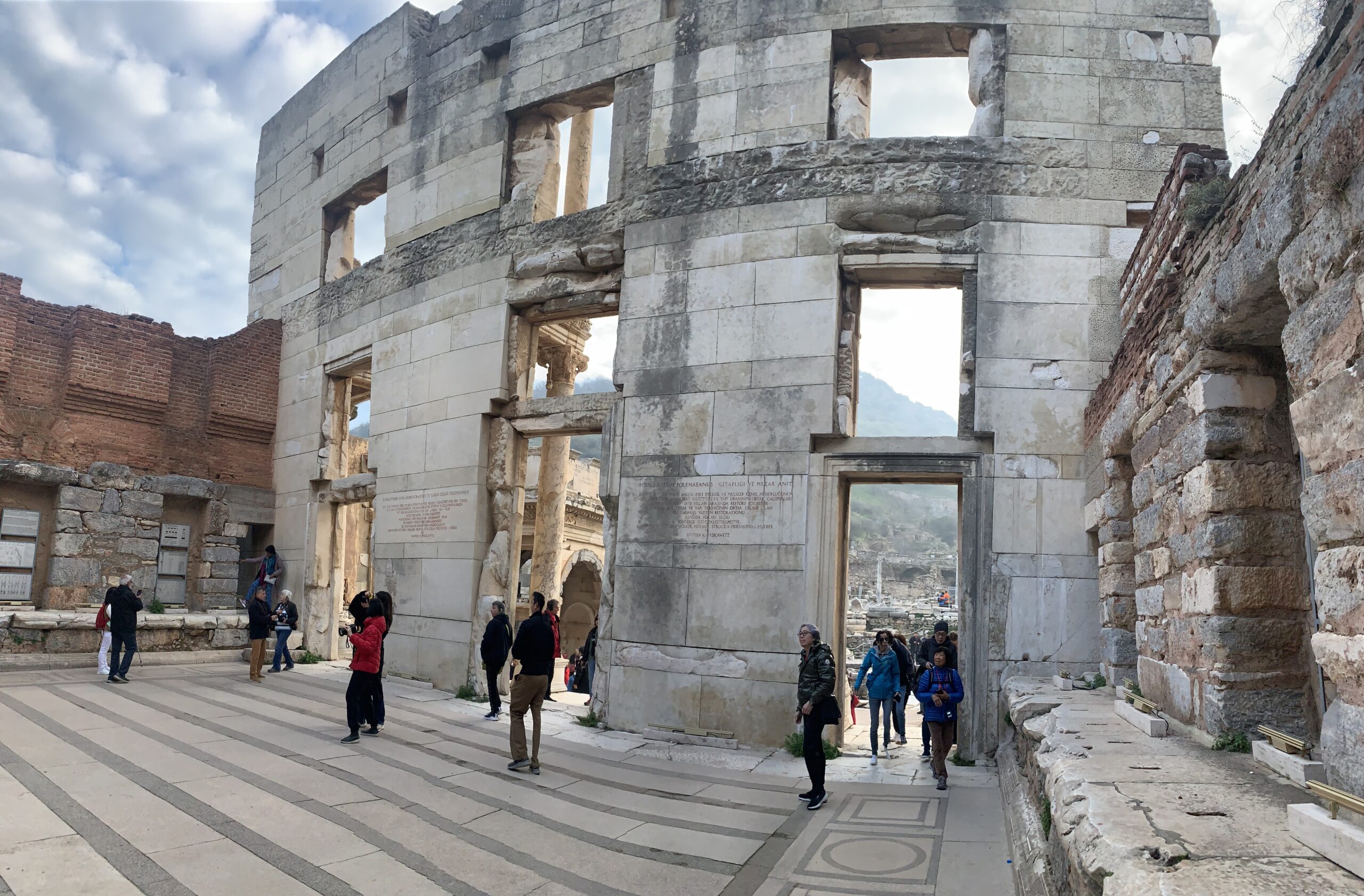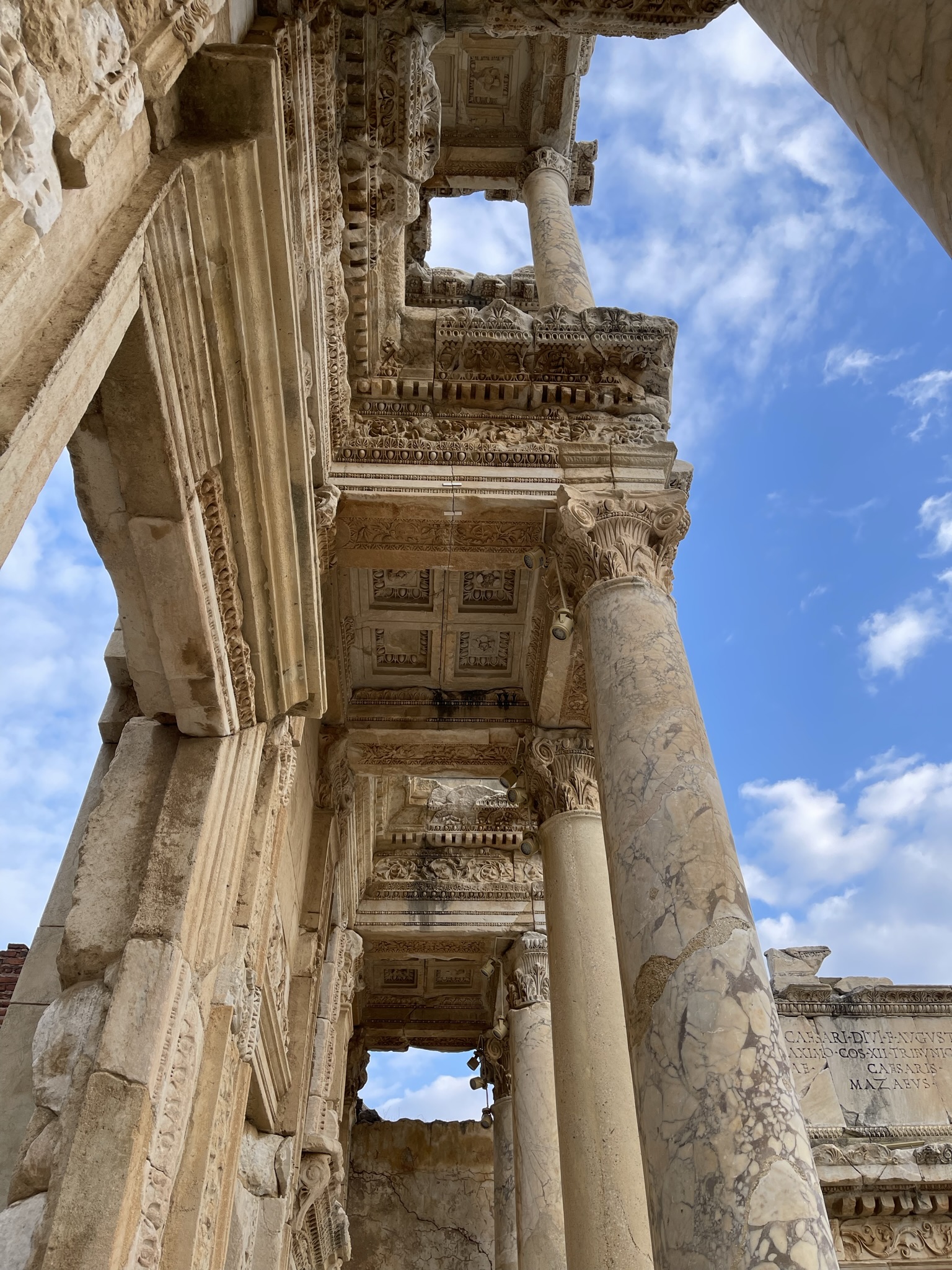 On our third stop, we headed off to my favorite place in the archaeological site, the Celsus Library. It is a testament to Roman architecture’s grandeur with an impressive facade; two levels of columns with ornate carvings and sculptures. This magnificent structure was built in the 2nd century AD and served as a repository of knowledge, housing thousands of scrolls and books.
