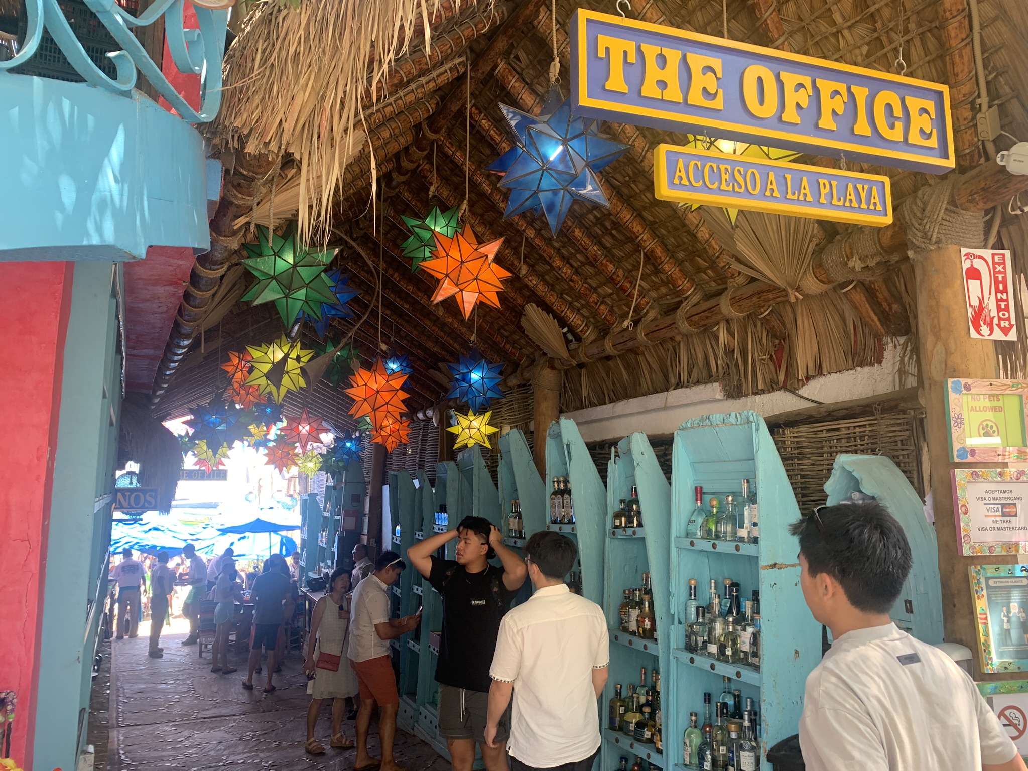 We woke up and went to The Office restaurant in Cabo San Lucas, which is a seafood restaurant at the beach. When we walked in, we asked the front desk for a table for 6 and had to wait 5 minutes for them to set up the table.