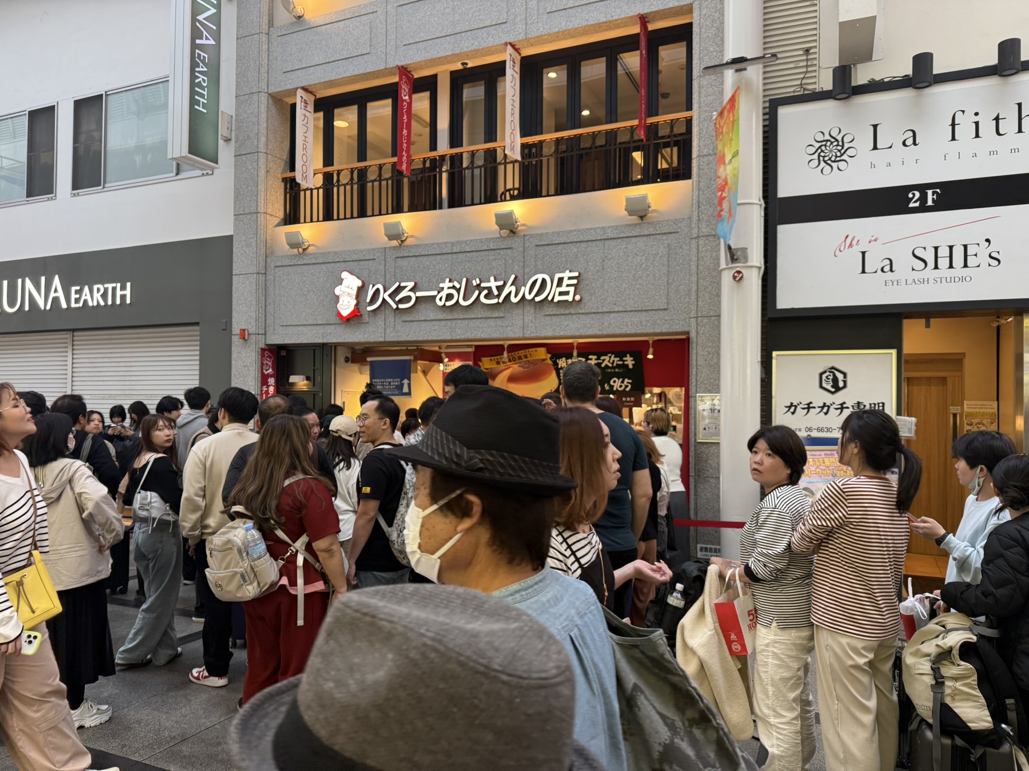 Rikuro’s cheesecake is one of Osaka’s most beloved treats, famous for its freshly baked, cloud-like texture and spongy body. Each cheesecake is surprisingly airy and generous enough to share between three to four people, making it perfect for tasting with friends and family. With 11 locations across Osaka, the popular Namba branch stands out thanks to its cafe seating on the 2nd and 3rd floors, where you can relax and order directly from the menu.