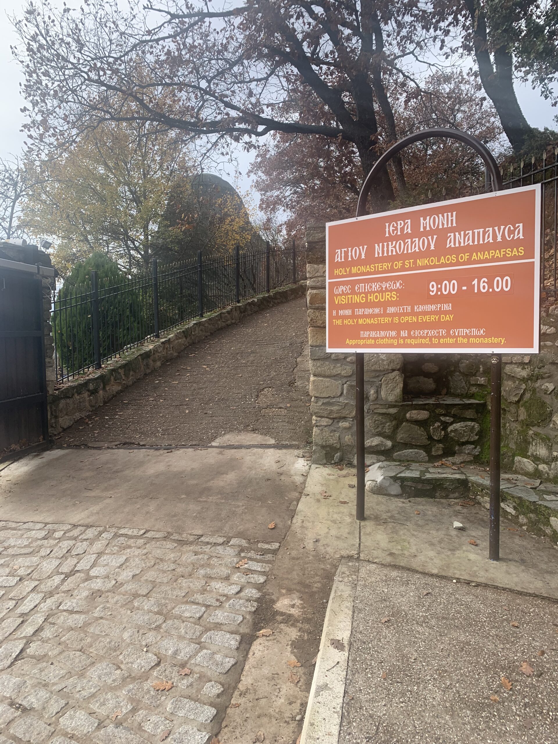 After checking out the views, we drove to the Monastery of Saint Nikolas. Fortunately, there were plenty of parking spaces available in the parking lot in front of the monastery and across the street.