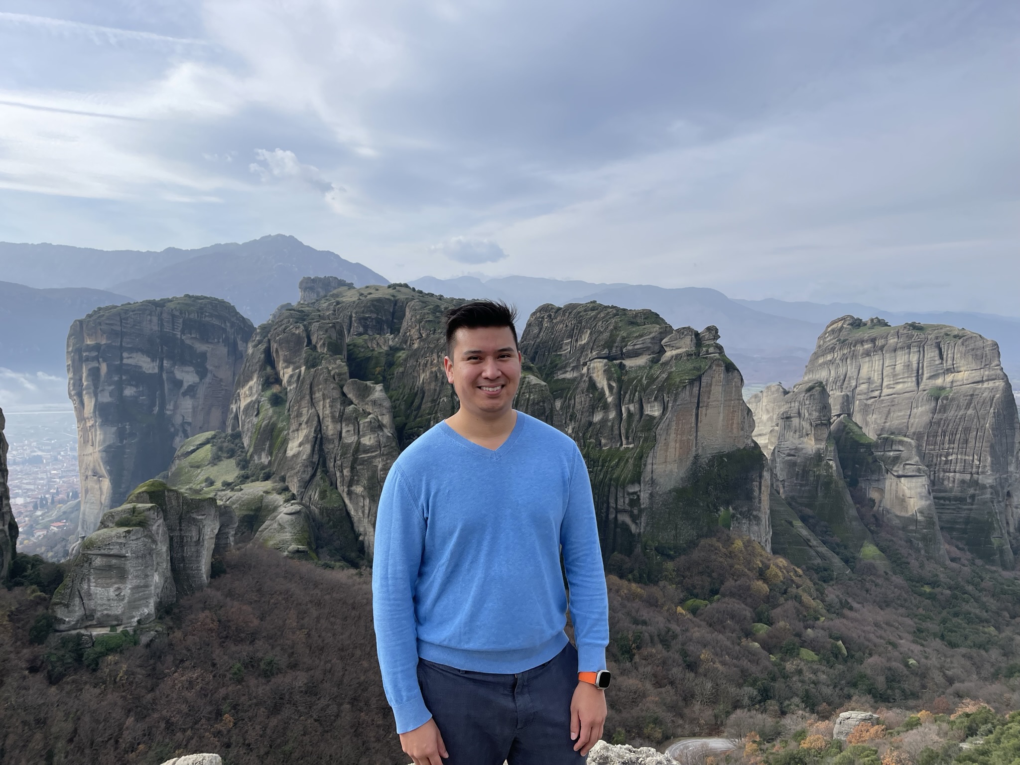 Julius posing in front of Meteora rocks