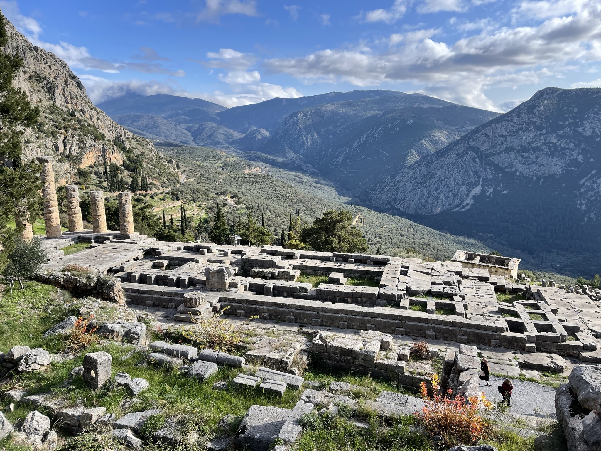 The Temple of Apollo with mountains in the background