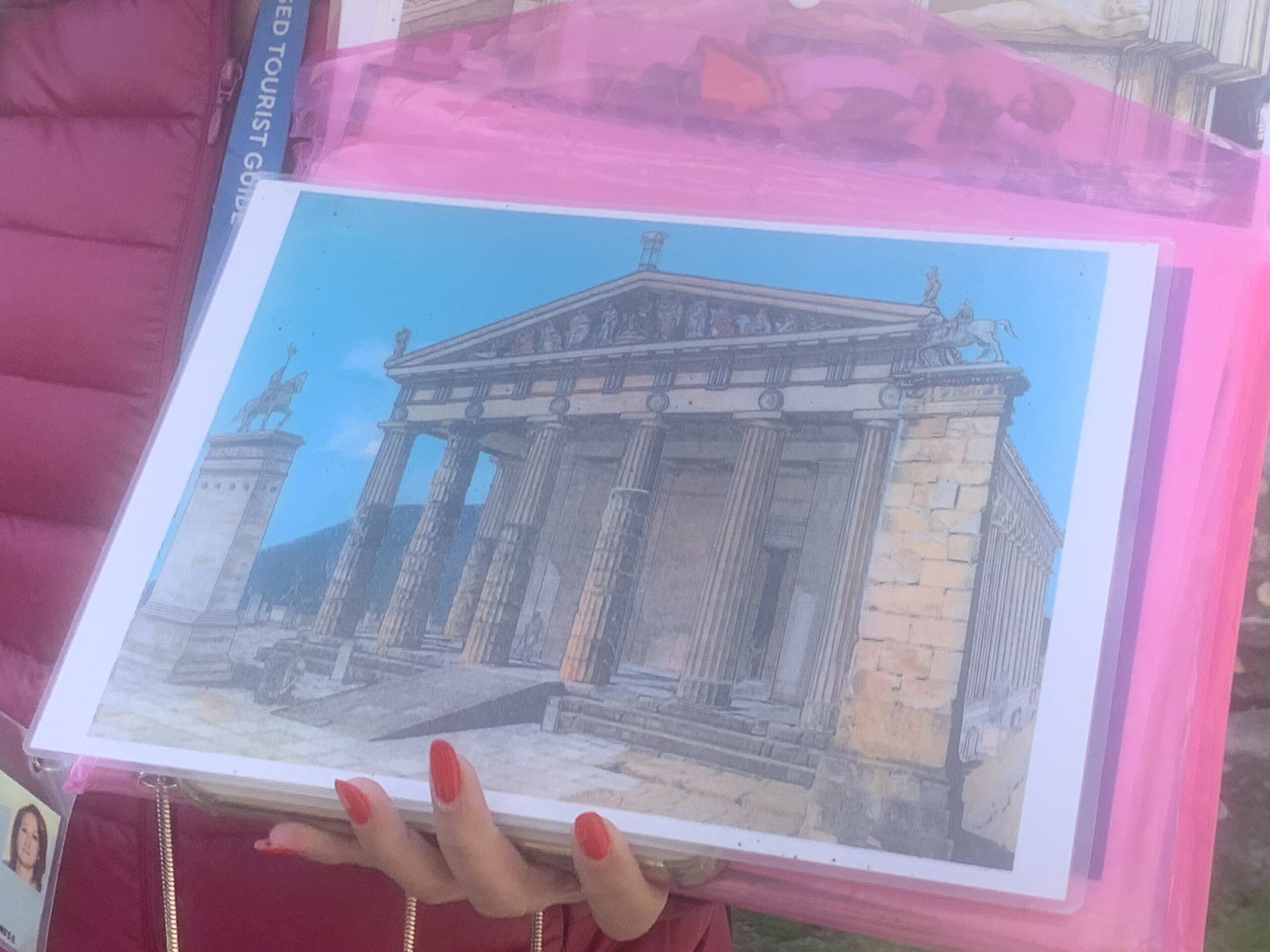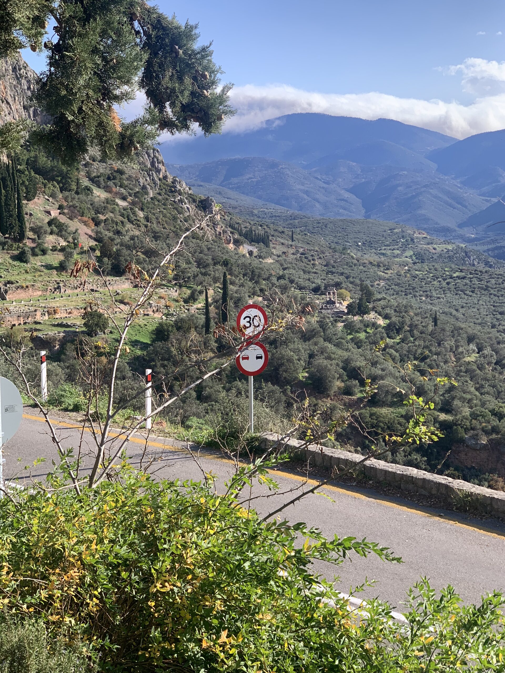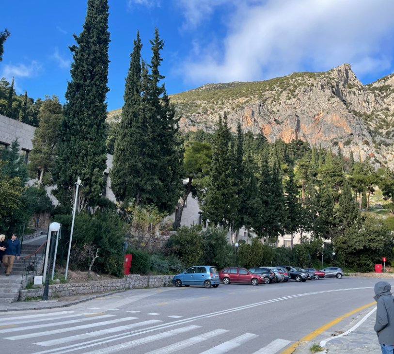 After breakfast, I drove my family to the Delphi Archaeological Museum. I couldn’t find parking in the front entrance, so I dropped my brother and dad off first. While my mom and I drove back into town to find parking. The closest spot we could find was a 10-minute walk from the Delphi Archaeological Museum. Even though the walk was a bit long, it was gorgeous as it overlooked the mountains.