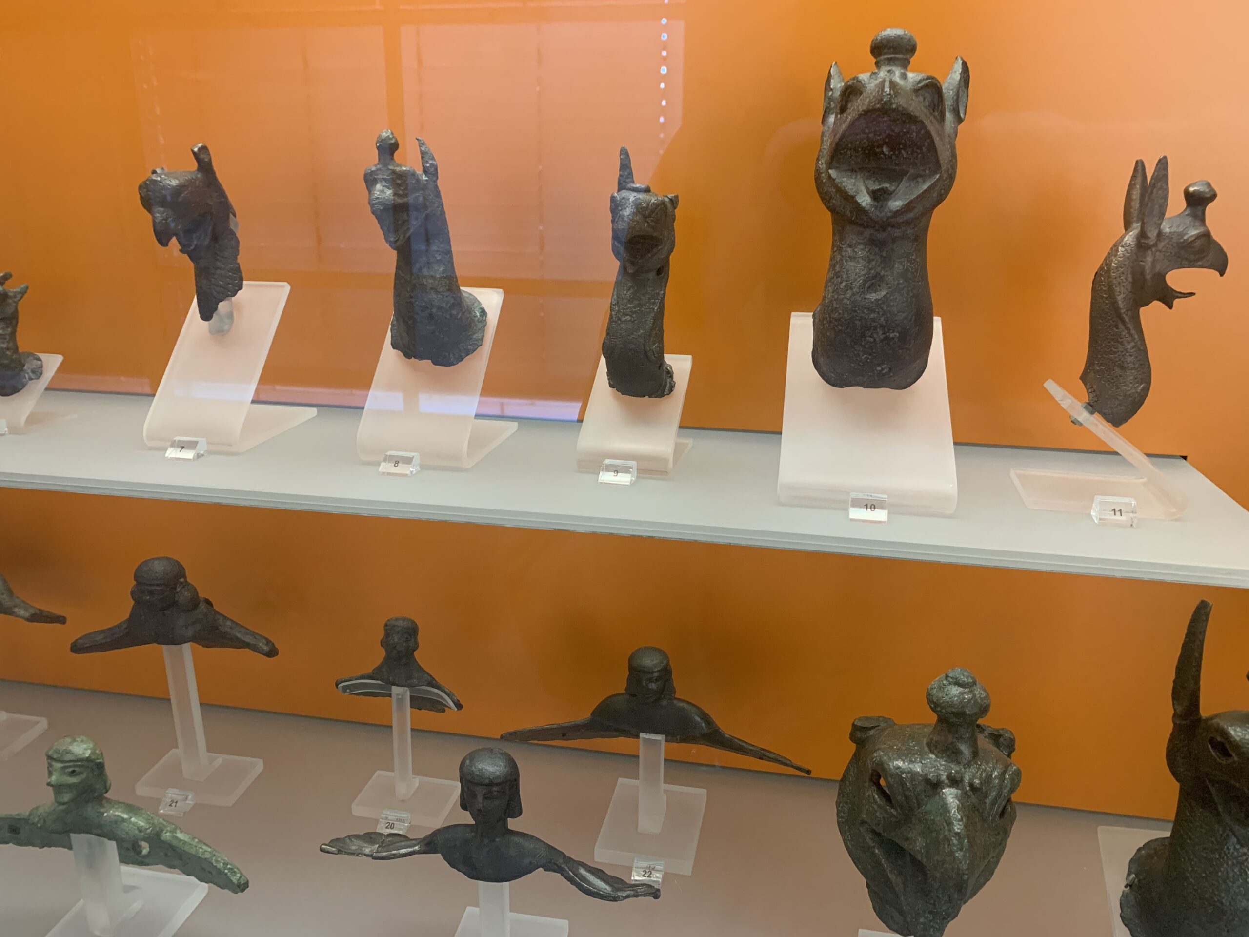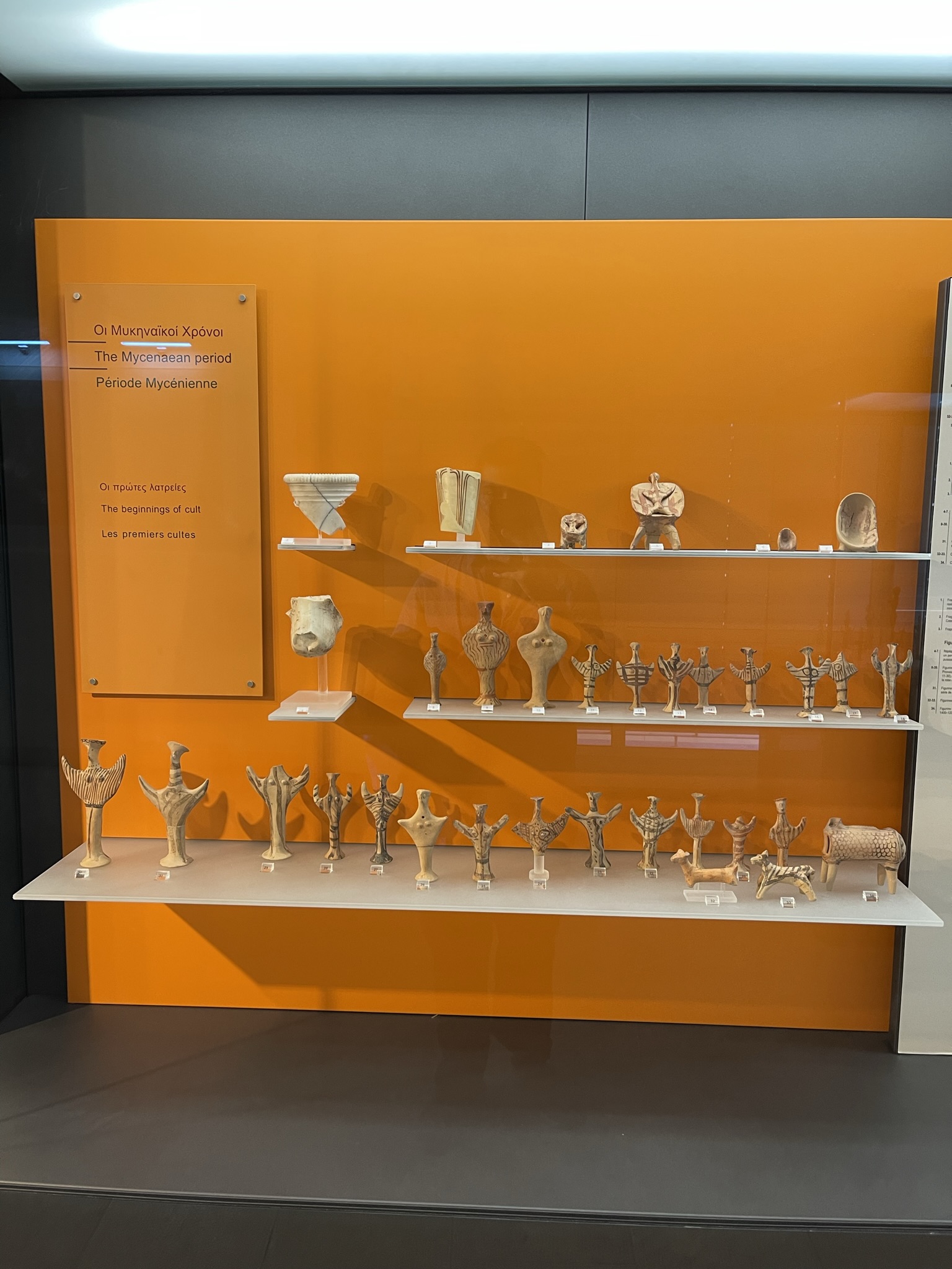 I made my way into the first room and saw clay figurines that were found during the Mycenaean period. I also saw ancient objects such as bronze figurines, helmets, and other votive offerings.