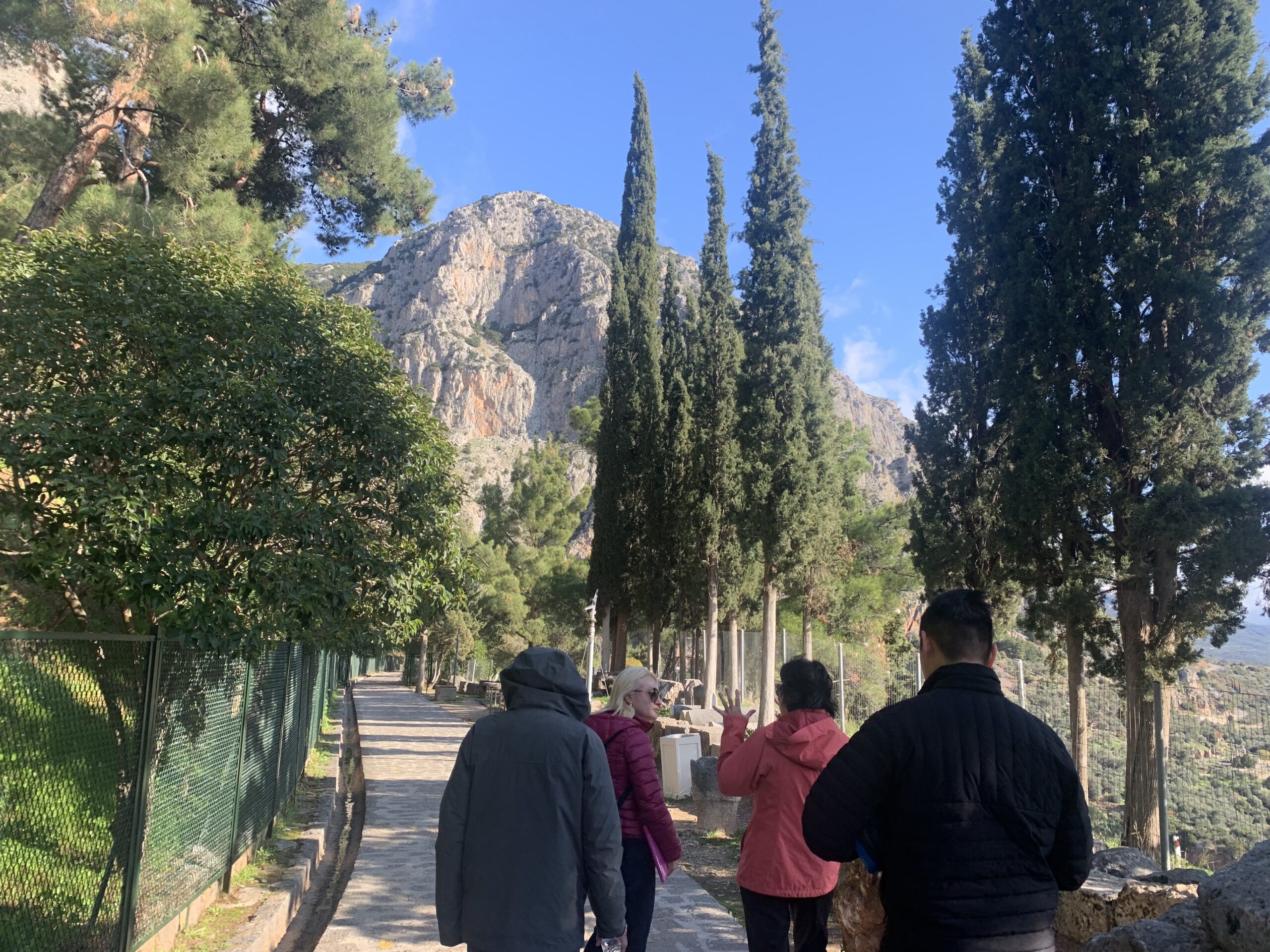 Once we made it to the entrance of the Delphi Archaeological Site, we showed our tickets and proceeded through the gate. We walked up a few steps made of stone and sat down on a couple of rocks to learn about the sanctuary’s history.