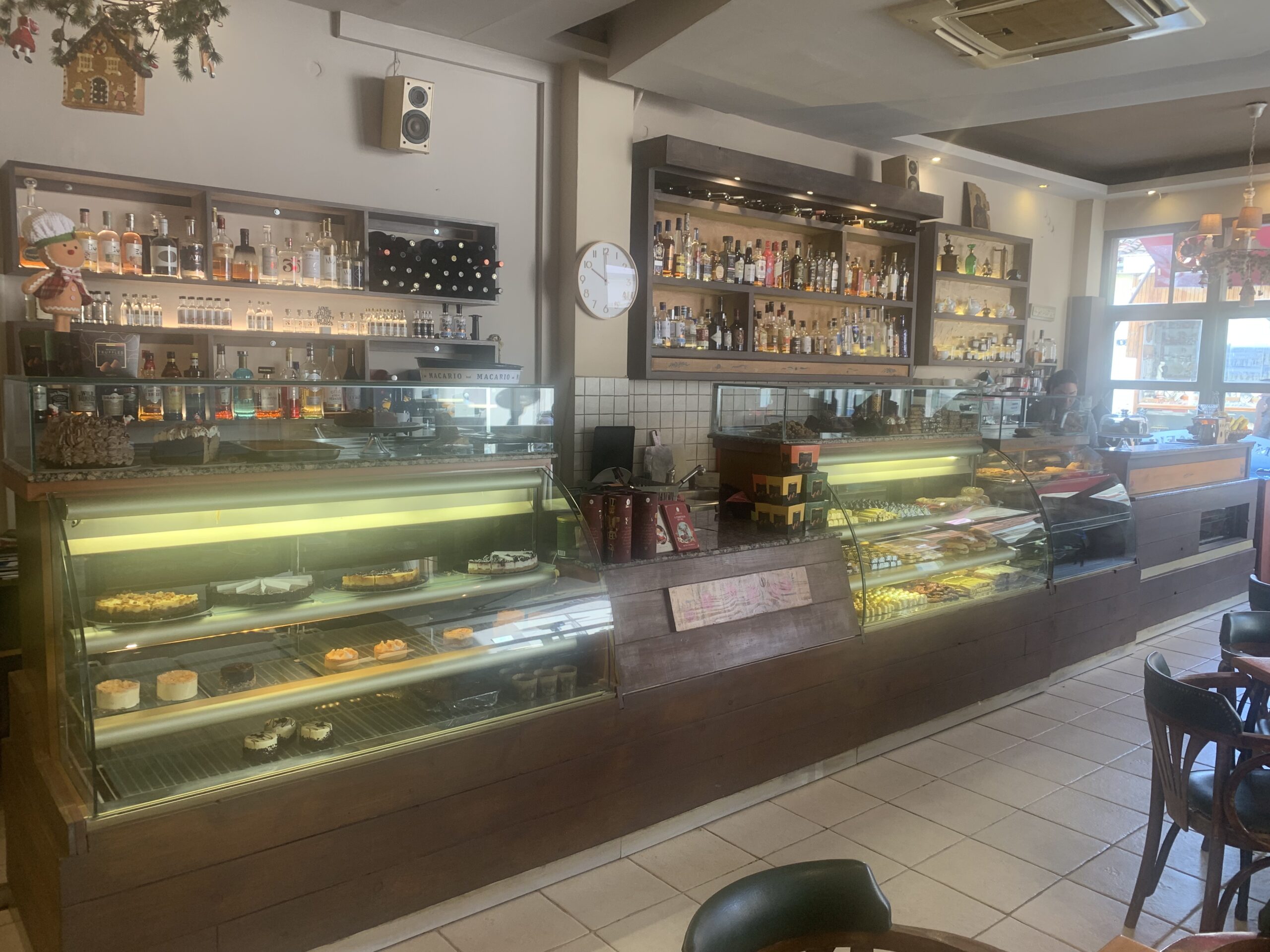In the morning, my dad and brother enjoyed the complimentary breakfast at Pan Hotel in Delphi. The spread consisted of various items such as Greek yogurt, croissants, orange juice, hard boiled eggs, and fruit. Me and my mom weren’t fond of the breakfast options, so we decided to visit a local coffee shop instead. We headed to Meaolopeia cafe, which was only a 5-minute walk from the hotel. The cafe had a classic decor and served a delightful selection of coffee, pastries, and wine. We ordered a latte, cappuccino, and a mocha to go. Each drink cost only 2,5 euros, so the total was 7,5 euros (the tax is included in the menu price).